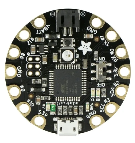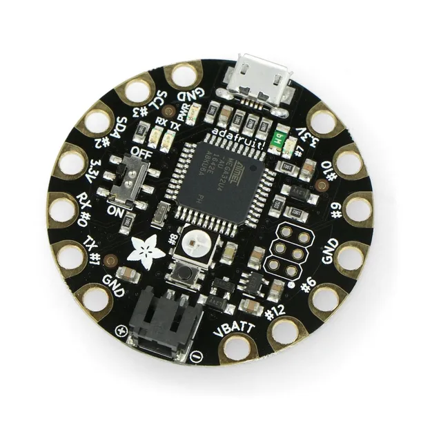 Mały, okrągły moduł z mikrokontrolerem AVR Atmega 32u4.