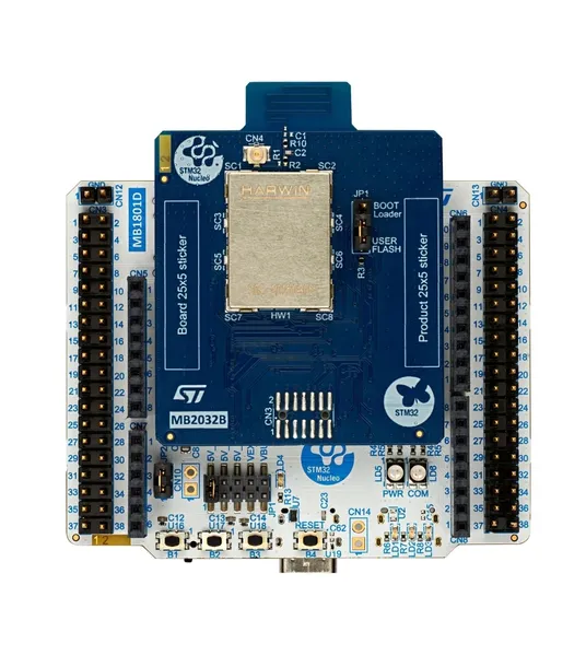 Płytka rozwojowa NUCLEO-WB05KZ oparta na mikrokontrolerze STM32WB05KZ z rdzeniem ARM Cortex-M0+ umożliwia projektowanie aplikacji komunikujących się bezprzewodowo z wykorzystaniem technologii Bluetooth Low Energy w wersji 5.4. Mikrokontroler wyposażony w 192 kB pamięci Flash oraz 24 kB SRAM umieszczony w obudowie VFQFPN32. Wbudowany transceiver 2,4 GHz i antena PCB zapewniają stabilność połączenia i wysoką wydajność energetyczną, umożliwiając budowę energooszczędnych rozwiązań IoT.