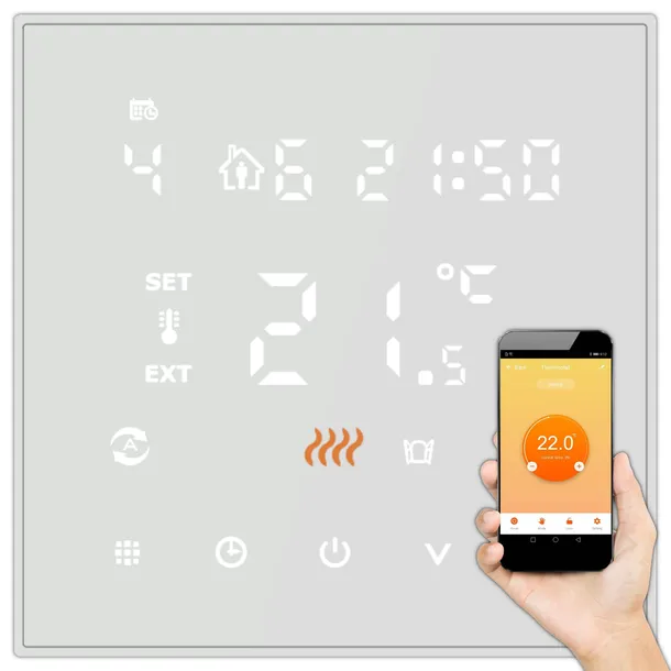 Termostat ten posiada funkcję WiFi, która umożliwia sterowanie temperaturą za pomocą telefonu czy tabletu z urządzeń opartych o system Android lub iOS.