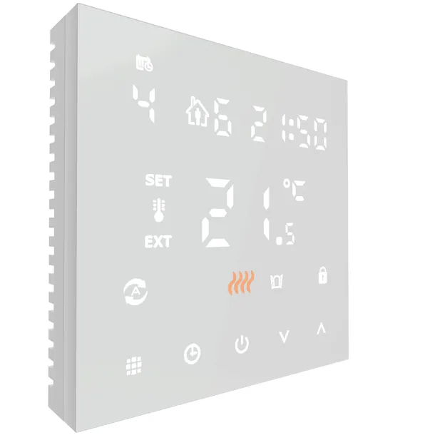 Termostat umożliwia dostosowanie różnej temperatury w 6 interwałach czasowych jak i programowanie regulatora w trybie 7 dni, 6+1 dni, 5+2 dni dzięki czemu staje się idealnym narzędziem do stworzenia komfortu cieplnego na miarę Twojego domu oraz potrzeb Twojej rodziny.